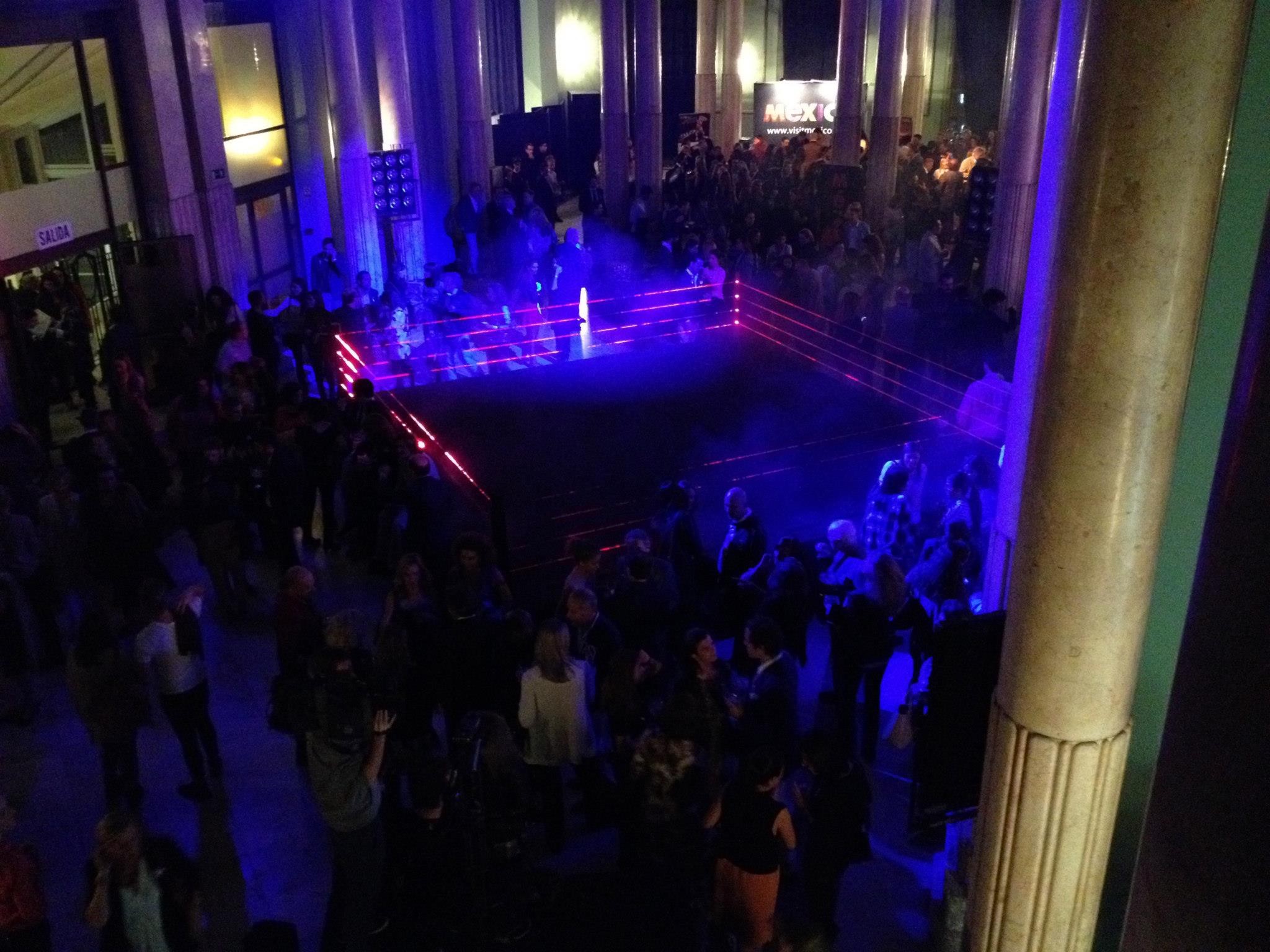 Tipo de proyecto Ring de boxeo con cuerdas de láser, iluminación convencional, led y robotizada, sonorización de espacio con equipo multipunto.