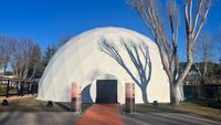Descripción Montaje de un domo de 12m con estructura lacada en blanco, suelo técnico, túnel de acceso, climatización.