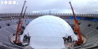 Descripción Montaje de un domo de 25m de diámetro con suelo técnico, paneles acústicos, Video Liner, salidas de evacuación, túnel de acceso, climatización...