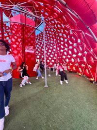 Tipo de proyecto Fabricación y montaje de un domo de 18m con cobertura verde y Proyección Inmersiva mediante 6 proyectores láser 20k con calibración digital.