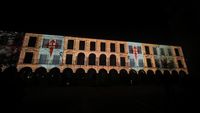 Descripción Producción de contenidos Mapping. Sistema de proyección a base de proyectores 20k y sonido multipunto sobre fachada de 50m.